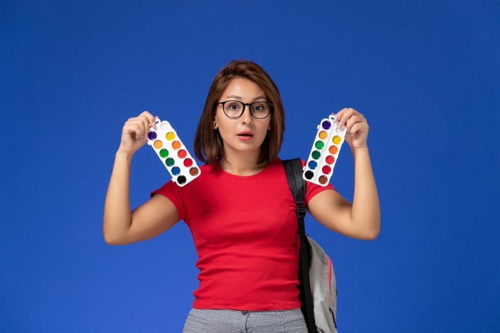 Widerstehen Sie der Versuchung, jede Lieblingsfarbe einzubauen. Drei bis vier Haupttöne reichen, wiederholt in unterschiedlichen Materialien. Entfernen Sie ein Element, wenn die Komposition kippt. Fotografieren Sie schwarzweiß, um Werte und Kontraste zu prüfen. Kommentieren Sie, welche Farbe Sie zuletzt bewusst weggelassen haben.